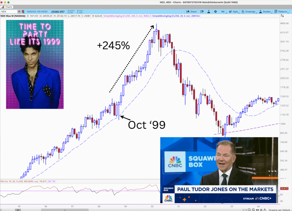 Part 5 – Tudor says party like it’s 1999! Yep, he said that.  And also the NASDAQ could double from here…!